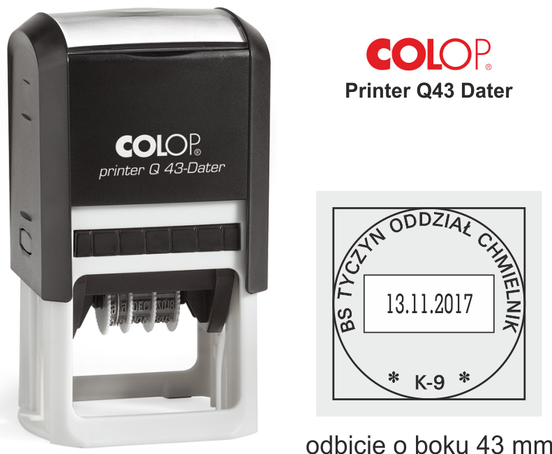 Datownik serii Printer z płytką tekstową o wymiarach 43x43 mm.