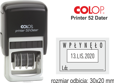 Datownik serii Printer z płytką tekstową o wymiarach 30x20 mm.