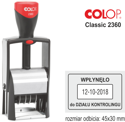 Niezwykle trwały datownik szkieletowy z płytką tekstową o powierzchni odbicia: 45x30 mm.