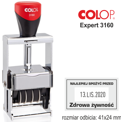 Najmocniejszy metalowy datownik szkieletowy przeznaczony do bardzo intensywnej pracy z płytką tekstową o powierzchni odbicia: 41x24 mm.