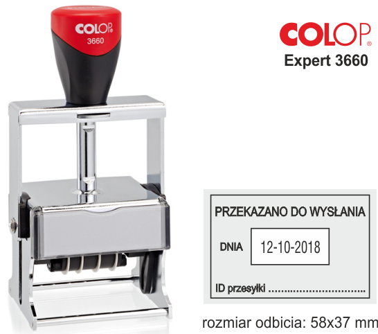 Najmocniejszy metalowy datownik szkieletowy przeznaczony do bardzo intensywnej pracy z płytką tekstową o powierzchni odbicia: 58x37 mm.