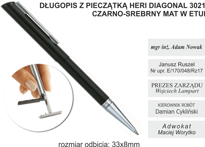 DŁUGOPIS Z PIECZĄTKĄ HERI DIAGONAL 3021 CZARNO-SREBRNY MAT W ETUI