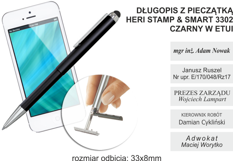 DŁUGOPIS Z PIECZĄTKĄ HERI STAMP & SMART 3302 CZARNY W ETUI