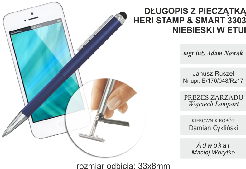DŁUGOPIS Z PIECZĄTKĄ HERI STAMP & SMART 3302 NIEBIESKI W ETUI