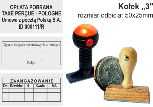 Pieczątka ręczna nieautomatyczna, oparta na tradycyjnych wzorach.