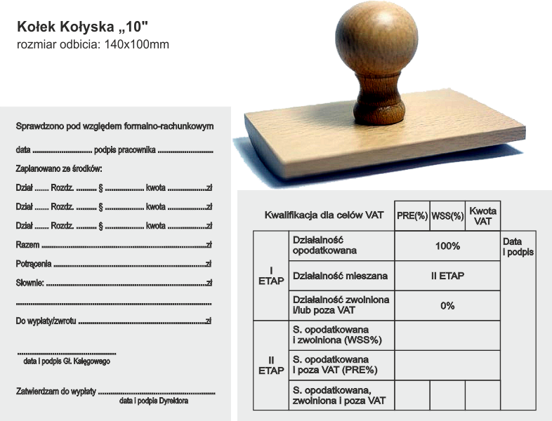 Duża kołyska mająca zastosowanie m.in. jako pieczątka tabelaryczna i opisowa w księgowości.