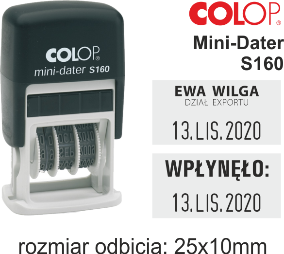 Najmniejszy samotuszujący datownik z miejscem na tekst powyżej dat.