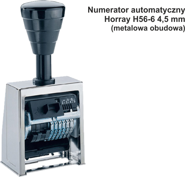 Numerator automatyczny sześciopozycyjny Horray w trwałej, metalowej obudowie.