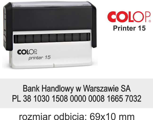 Pieczątka ta jest idealnym rozwiązaniem do zapisu długiej frazy w jednej linii, bądź do umieszczenia rachunku bankowego.