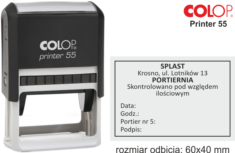 Format pieczątki: [60 x 40 mm] Maksymalna liczba wierszy: 10
