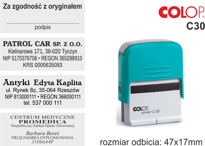 Format pieczątki: [47 x 17 mm] Maksymalna liczba wierszy: 6