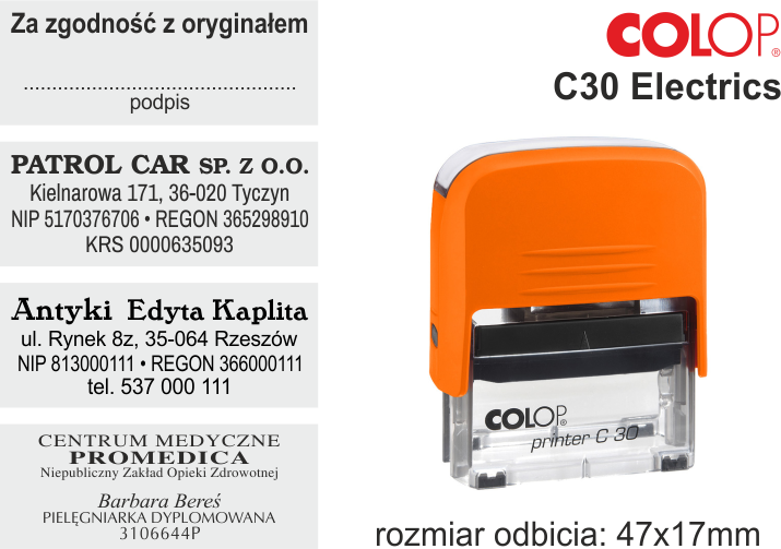 Format pieczątki: [47 x 17 mm] Maksymalna liczba wierszy: 6