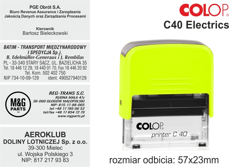 Format pieczątki: [57 x 23 mm] Maksymalna liczba wierszy: 7