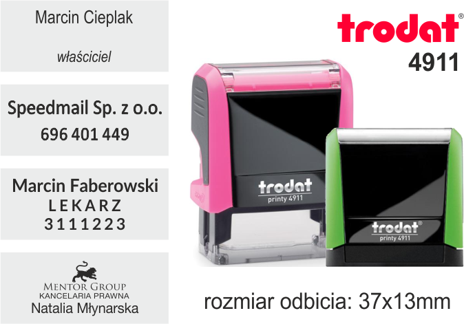 Format pieczątki: [37 x 13 mm] Maksymalna liczba wierszy: 4