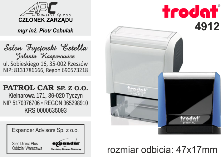 Format pieczątki: [47 x 17 mm] Maksymalna liczba wierszy: 6